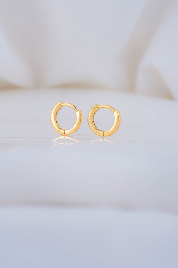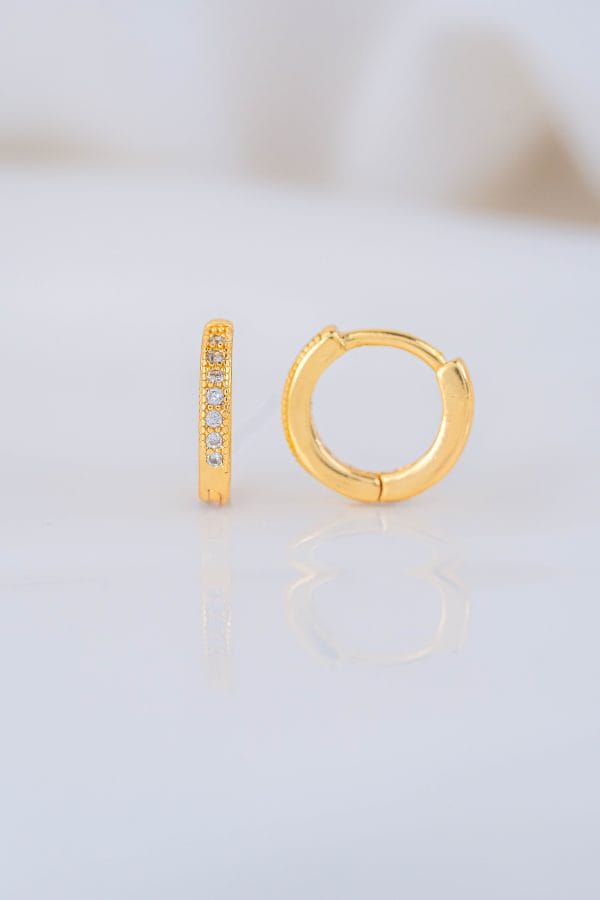 Aretes tipo candonga pequeña con microcircones incrustados que aportan un brillo delicado y elegante, ideales para acompañarte en el día a día. •Diseño tipo candonga • Detalle de microcircones brillantes • Acabado dorado brillante • Tamaño pequeño • Ideales para perforaciones superiores o para niñas • Cómodos y livianos • Perfectos para uso diario o para regalar con intención